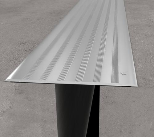Surface mounted serrated floor cover plate that allows for frequent thermal and seismic movement.