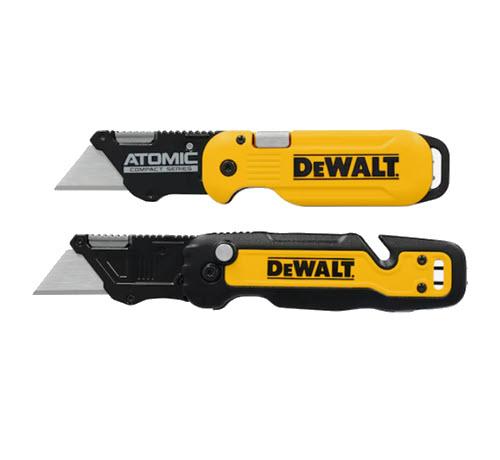 Take on a wide range of cutting applications with this Push and Flip Folding Utility Knife set. This set includes the DEWALT® ATOMIC COMPACT SERIES™ Push and Flip Folding Utility Knife and the Push and Flip Folding Utility Knife with Storage featuring ergonomic designs and one-handed flip-to-open operation. The DEWALT® ATOMIC COMPACT SERIES™ Push and Flip Folding Utility Knife is engineered 30% more compact for easy portability and maneuverability and the Push and Flip Folding Utility Knife with Storage has 5-blade onboard storage and a gut hook for quick cuts even while the knife is closed.