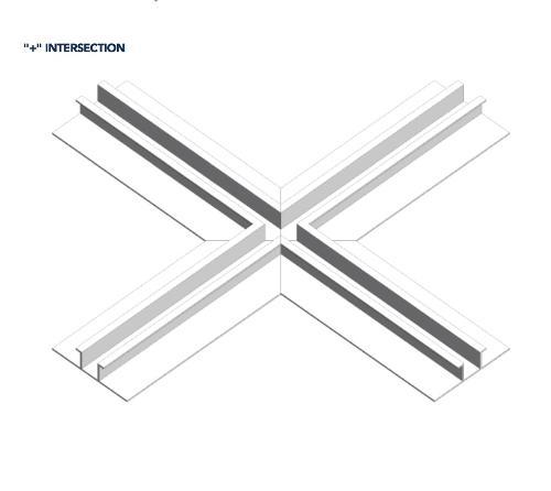 Factory fabricated intersections and corner pieces of the same or different moldings are used to connect horizontal and vertical joints, or transitioning from plane to plane. The intersections are welded and sealed. Standard leg lengths are 6" from the center point of the reveal. Custom leg lengths are available.